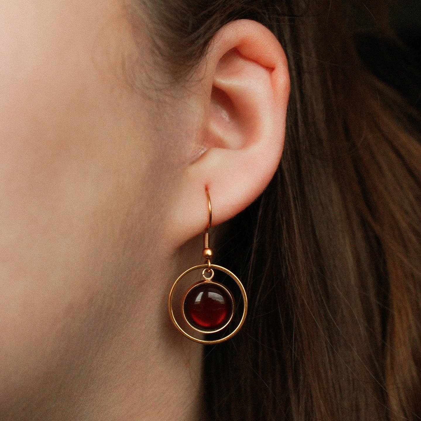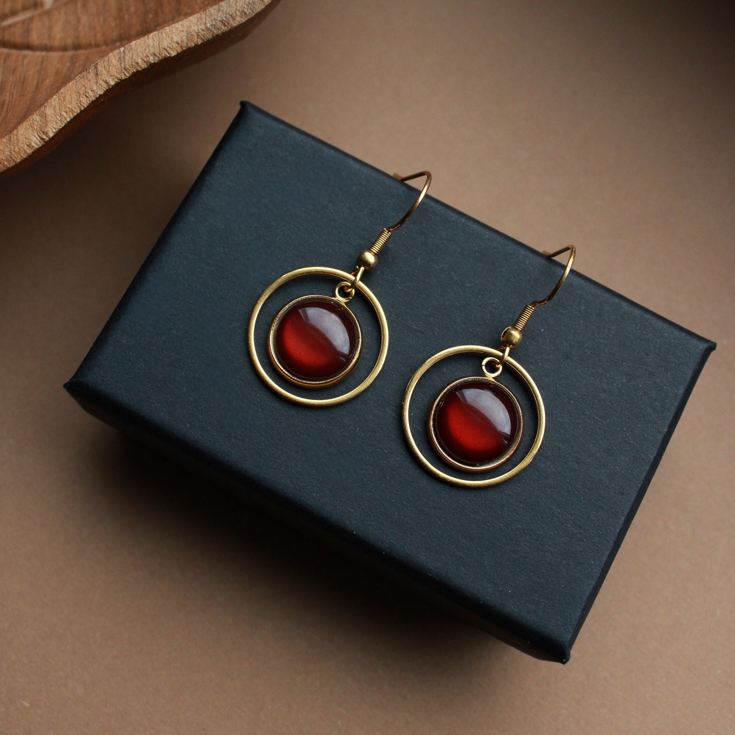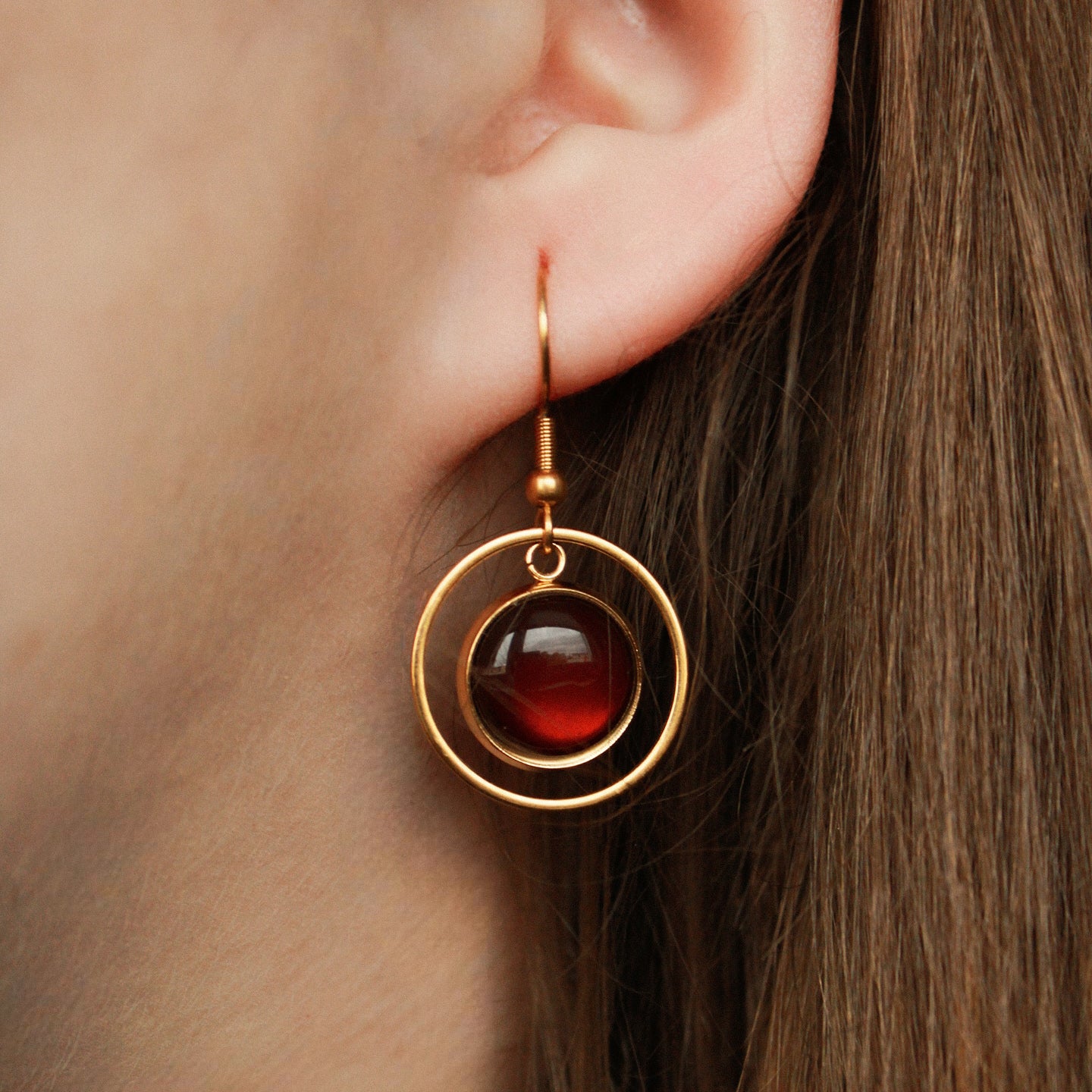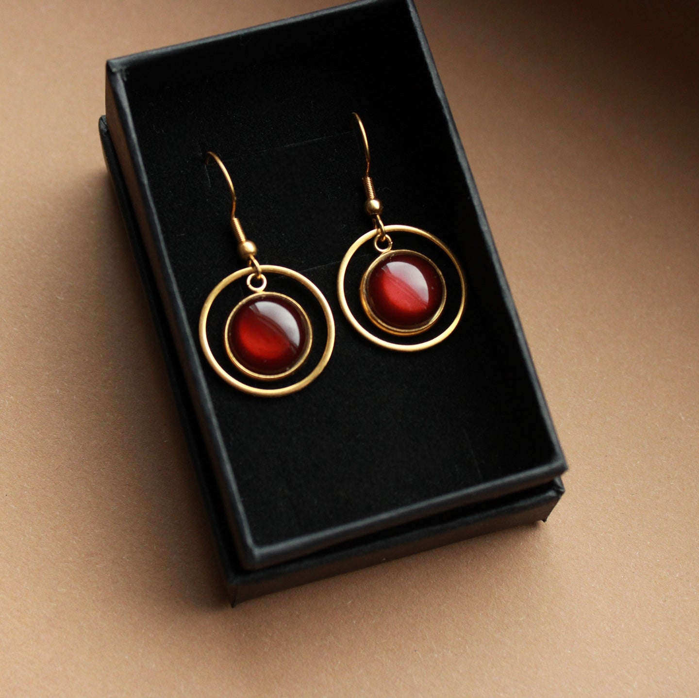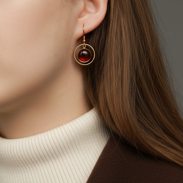 Diese goldenen Ohrringe mit dunkelbraunem Stein sind vielseitig tragbar, ob im Alltag, im Büro oder zu besonderen Anlässen. Der goldene Kreis misst 2 cm und umrahmt den warm schimmernden Stein, gefertigt aus hochwertigem Edelstahl.