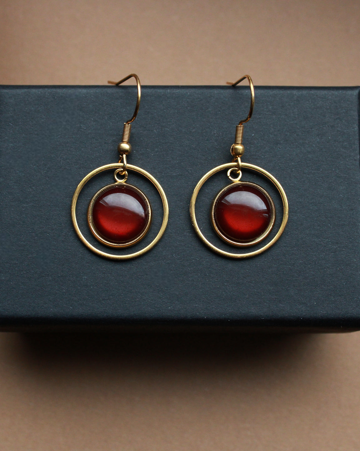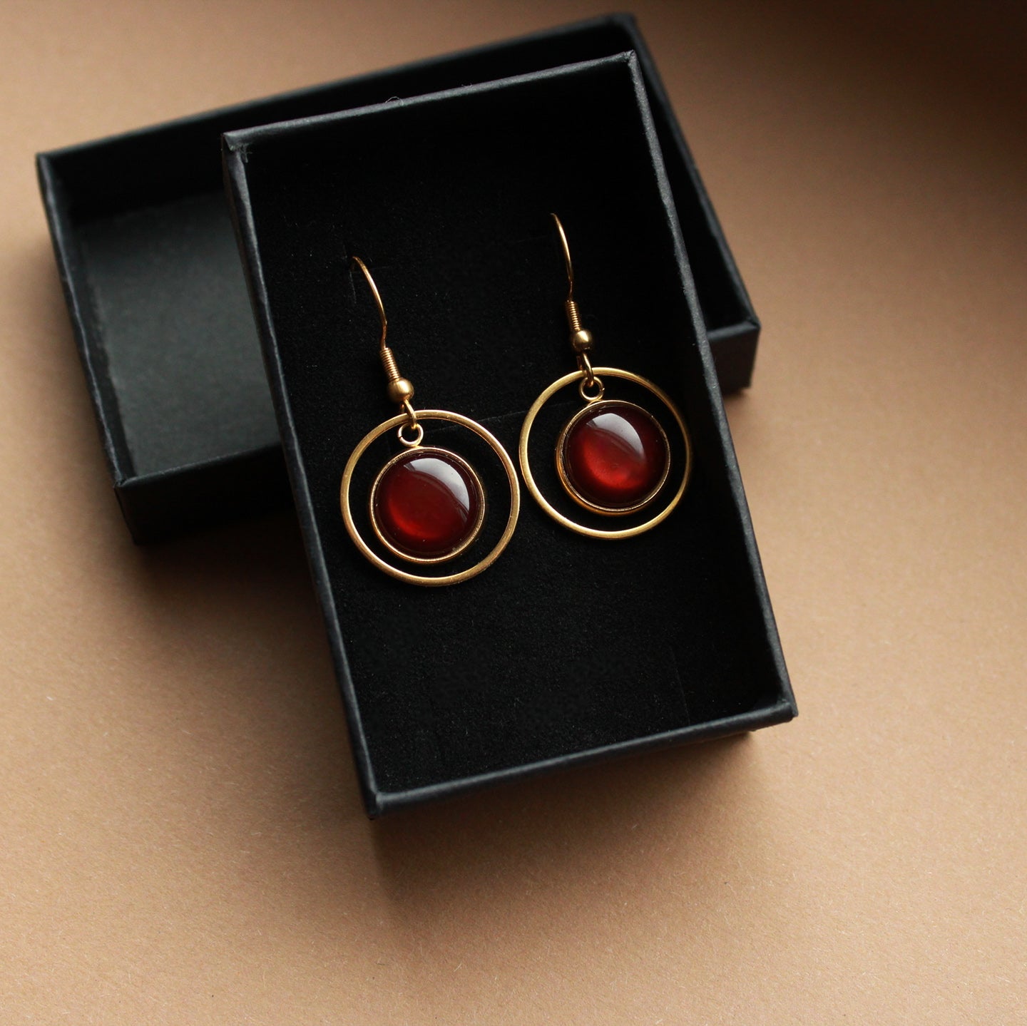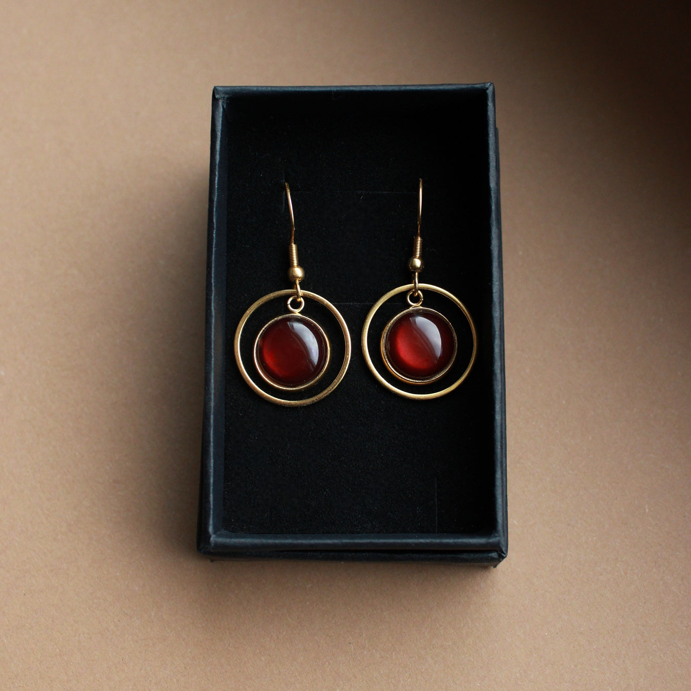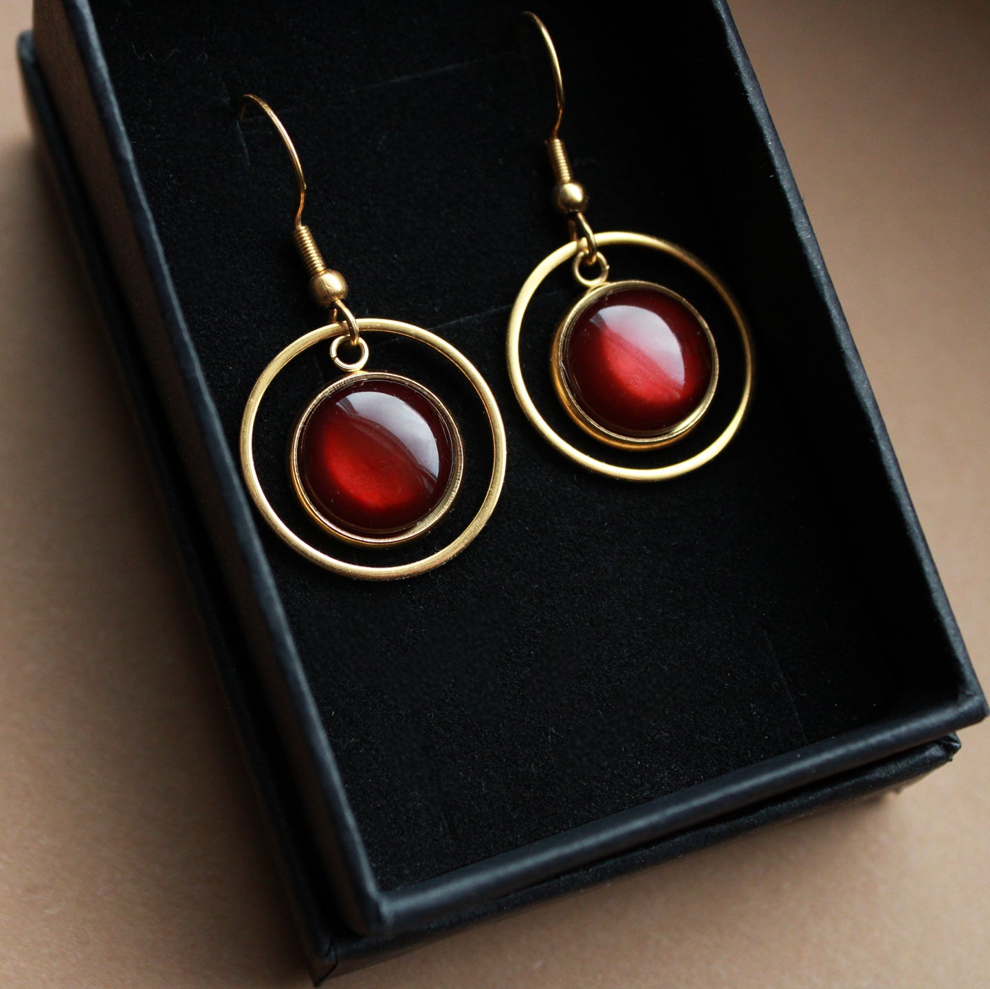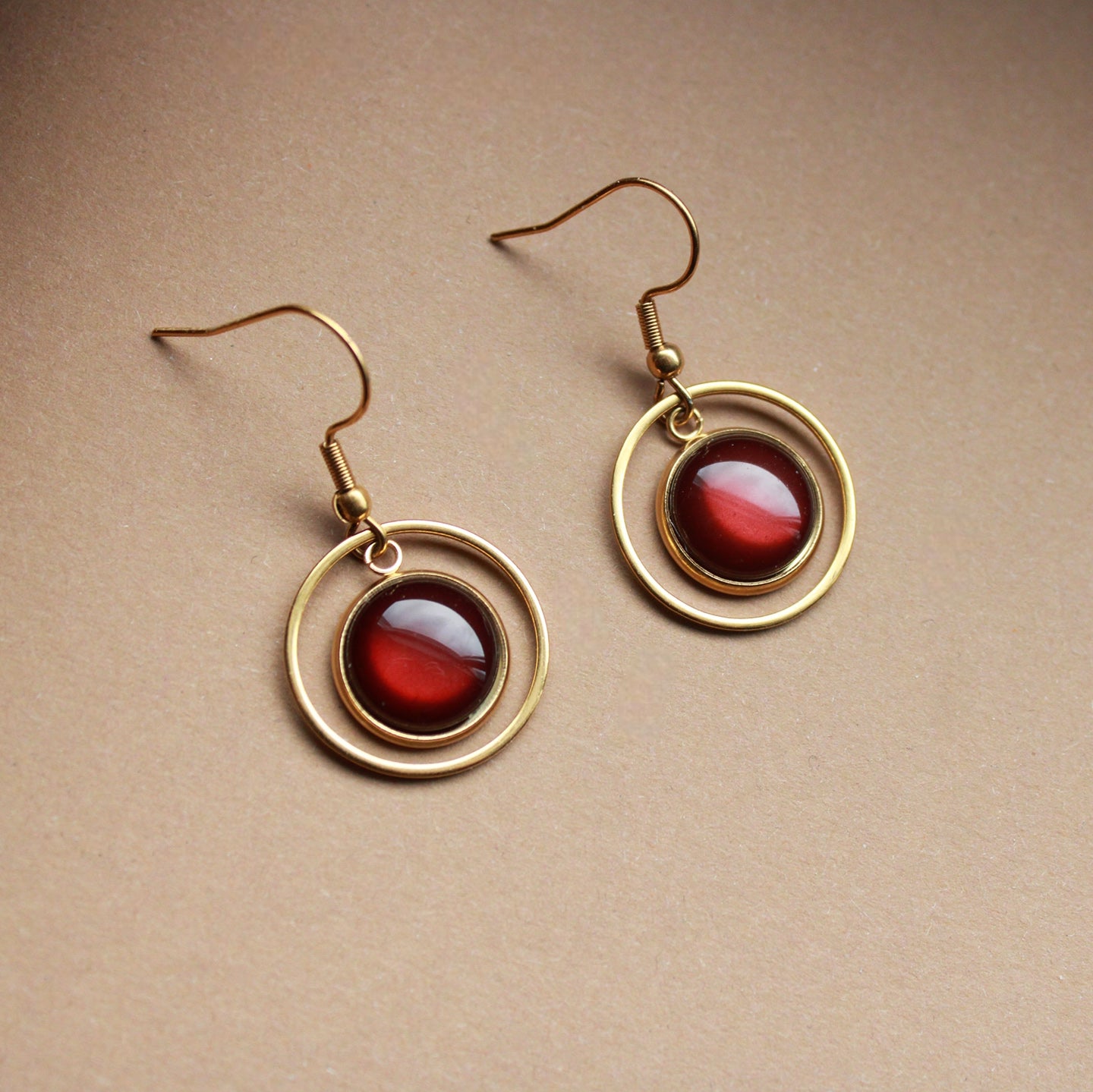Diese goldenen Ohrringe mit dunkelbraunem Stein sind vielseitig tragbar, ob im Alltag, im Büro oder zu besonderen Anlässen. Der goldene Kreis misst 2 cm und umrahmt den warm schimmernden Stein, gefertigt aus hochwertigem Edelstahl.