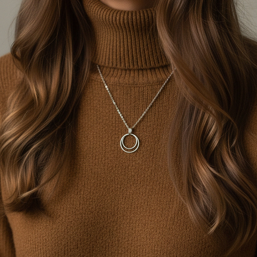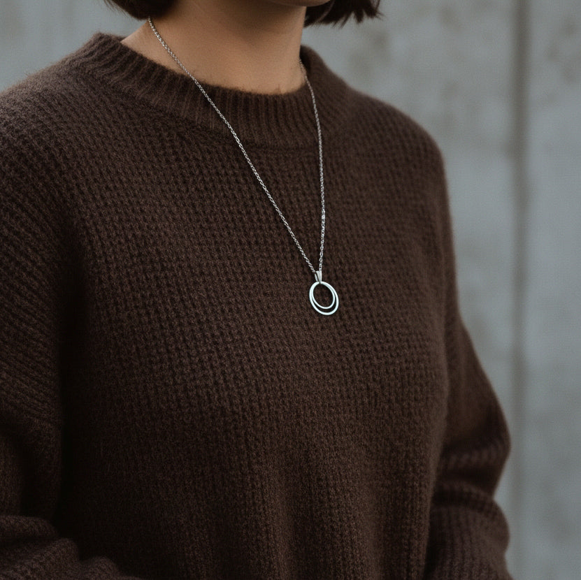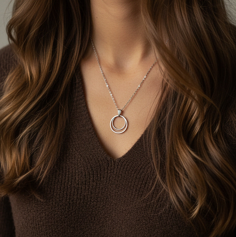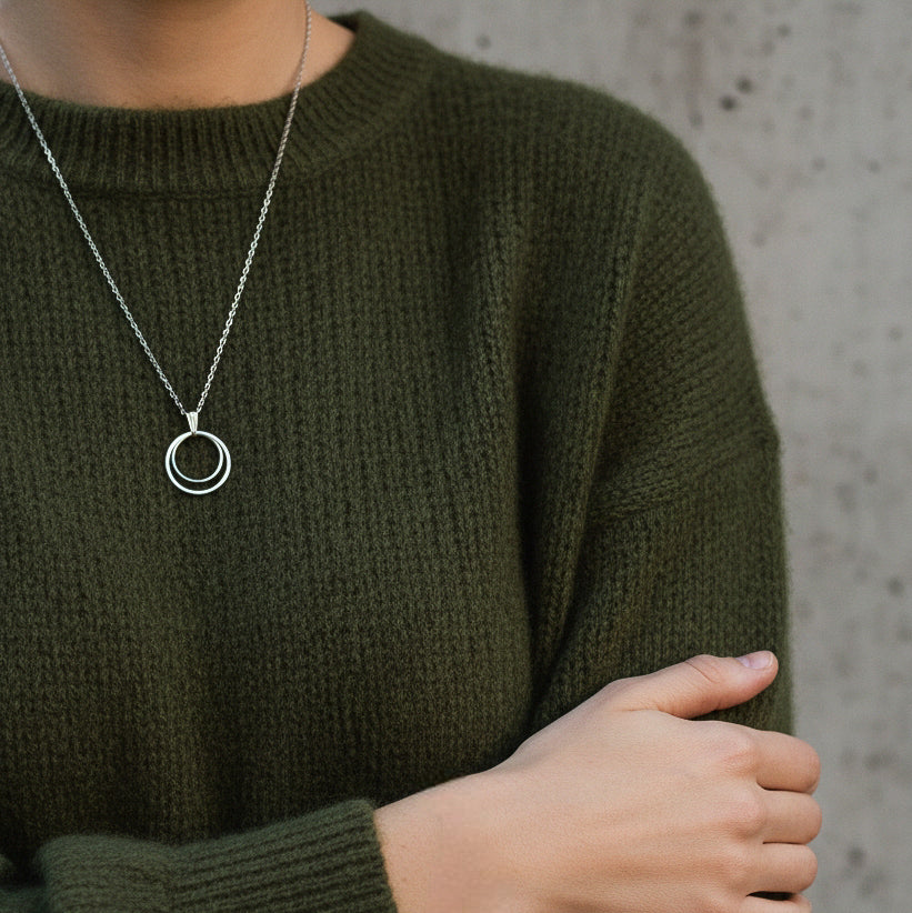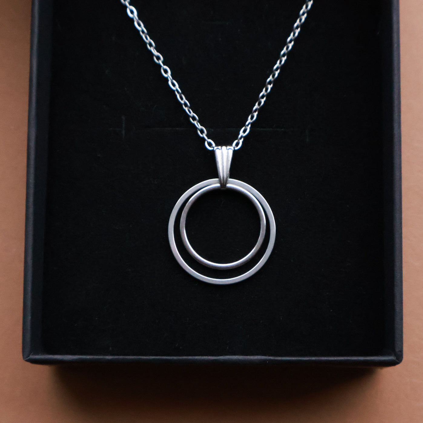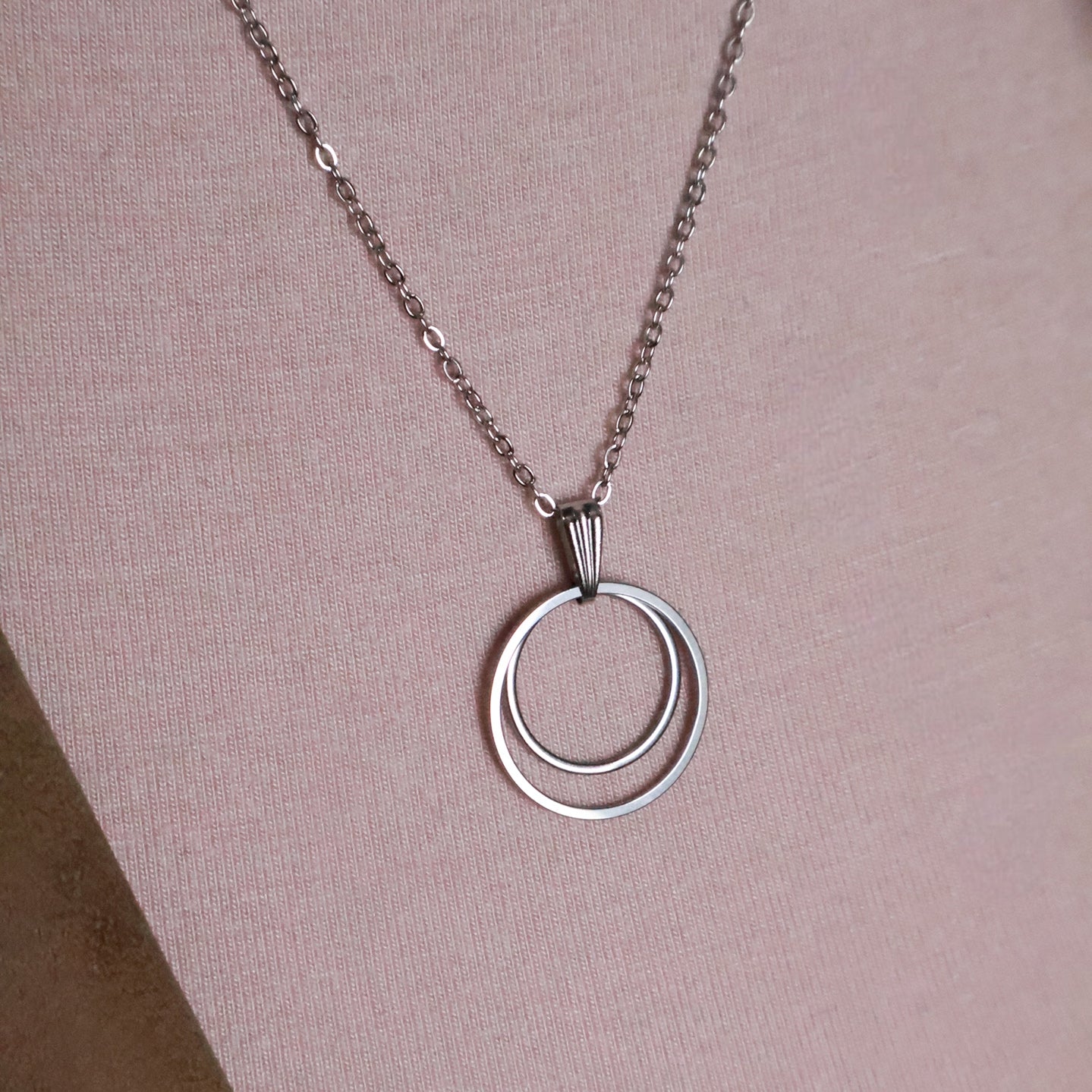 Halskette aus Edelstahl mit Doppelkreis-Anhänger