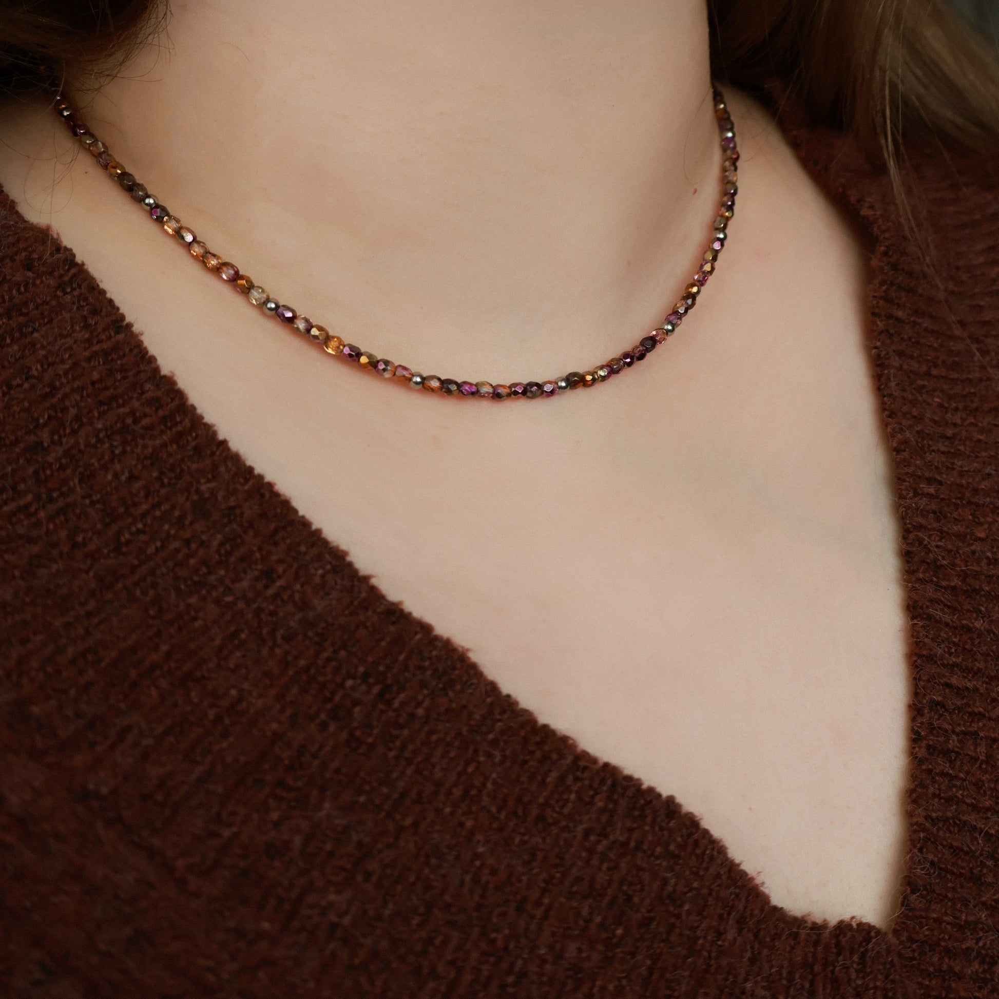Die Farbtöne reichen von warmem Braun über Kupfer bis zu sanften Beerennuancen und lassen sich das ganze Jahr über tragen. Ob allein oder im Layering mit anderen Ketten, sie passt sich deinem Stil an, ohne aufdringlich zu wirken.
