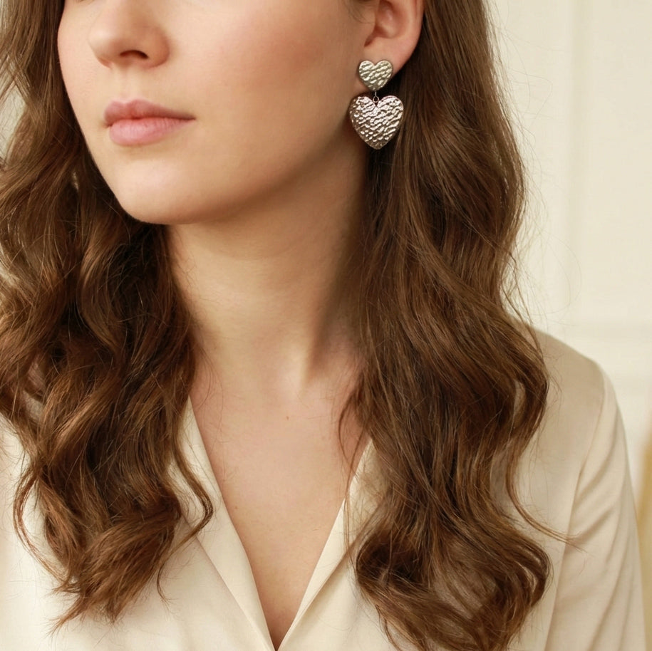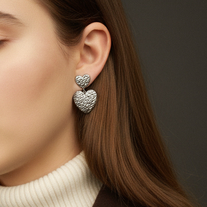 Herz-Ohrringe in Silber aus Edelstahl, Statement Ohrringe