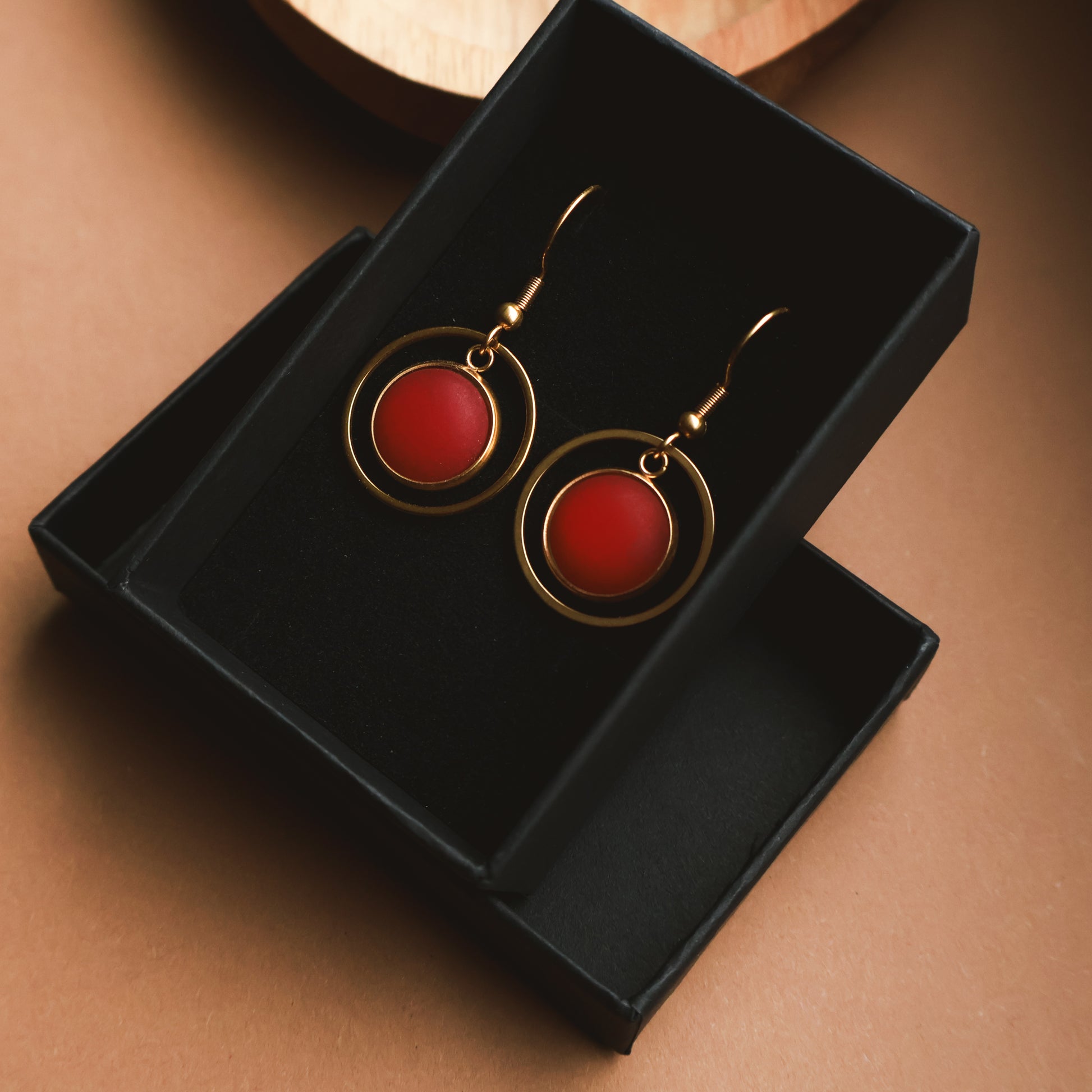 Ohrringe Gold und Rot Matt mit Kreis Anhänger, Edelstahl