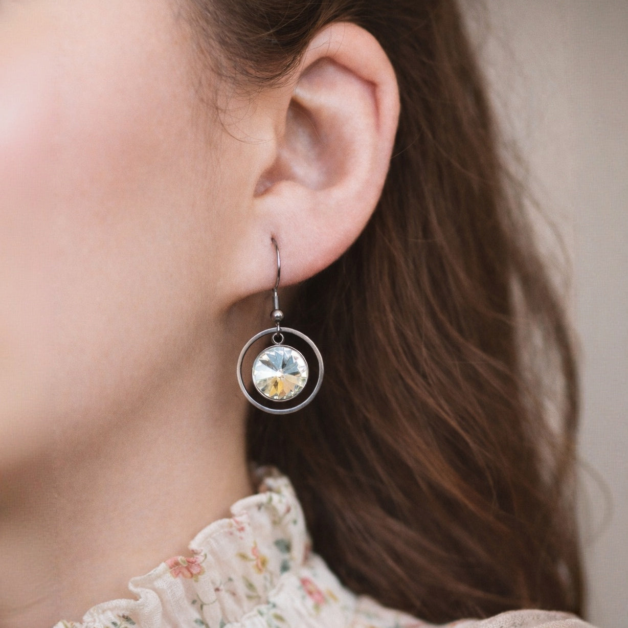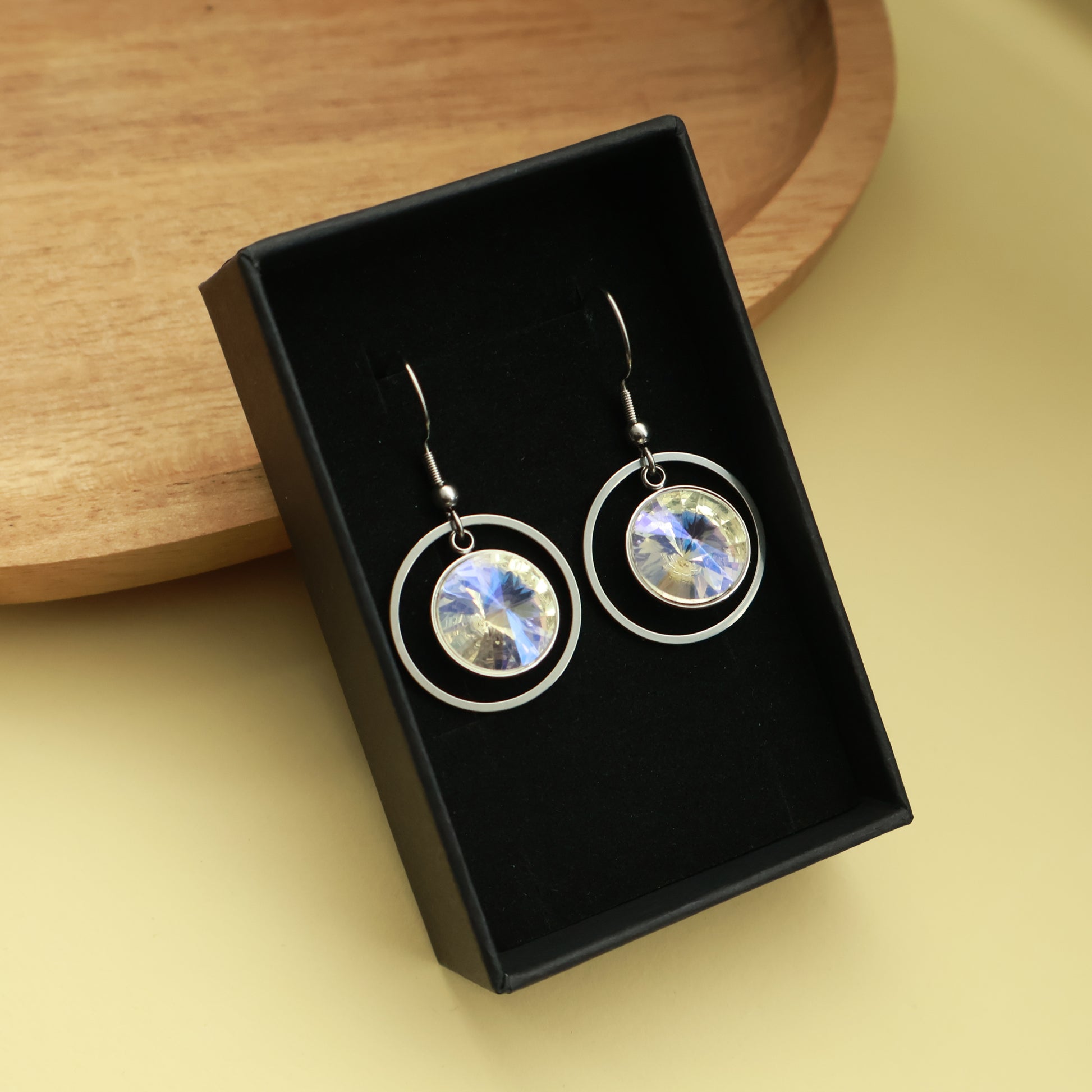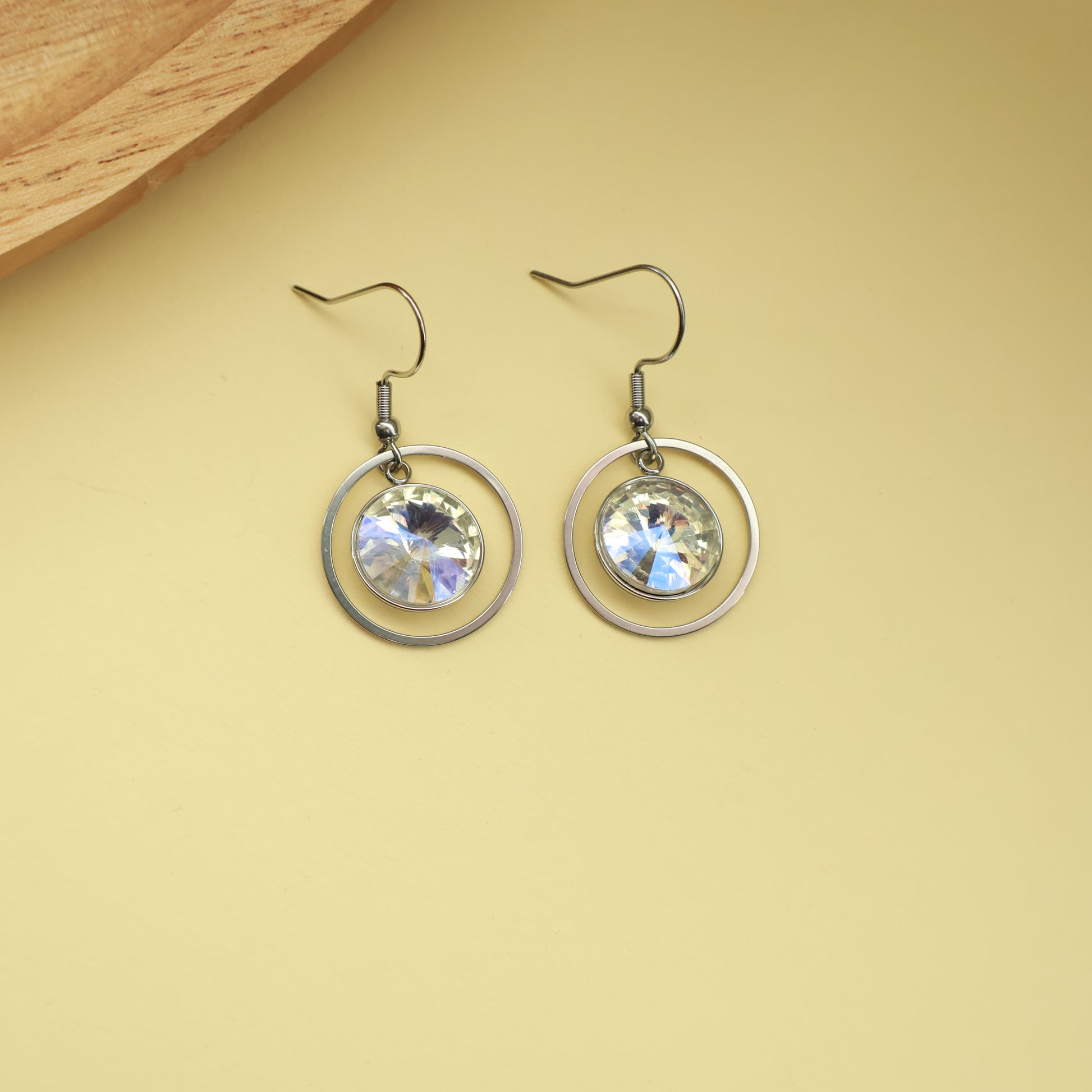 Ohrringe in Silber mit Zirkonia-Steinen und Kreis Anhänger, Edelstahl