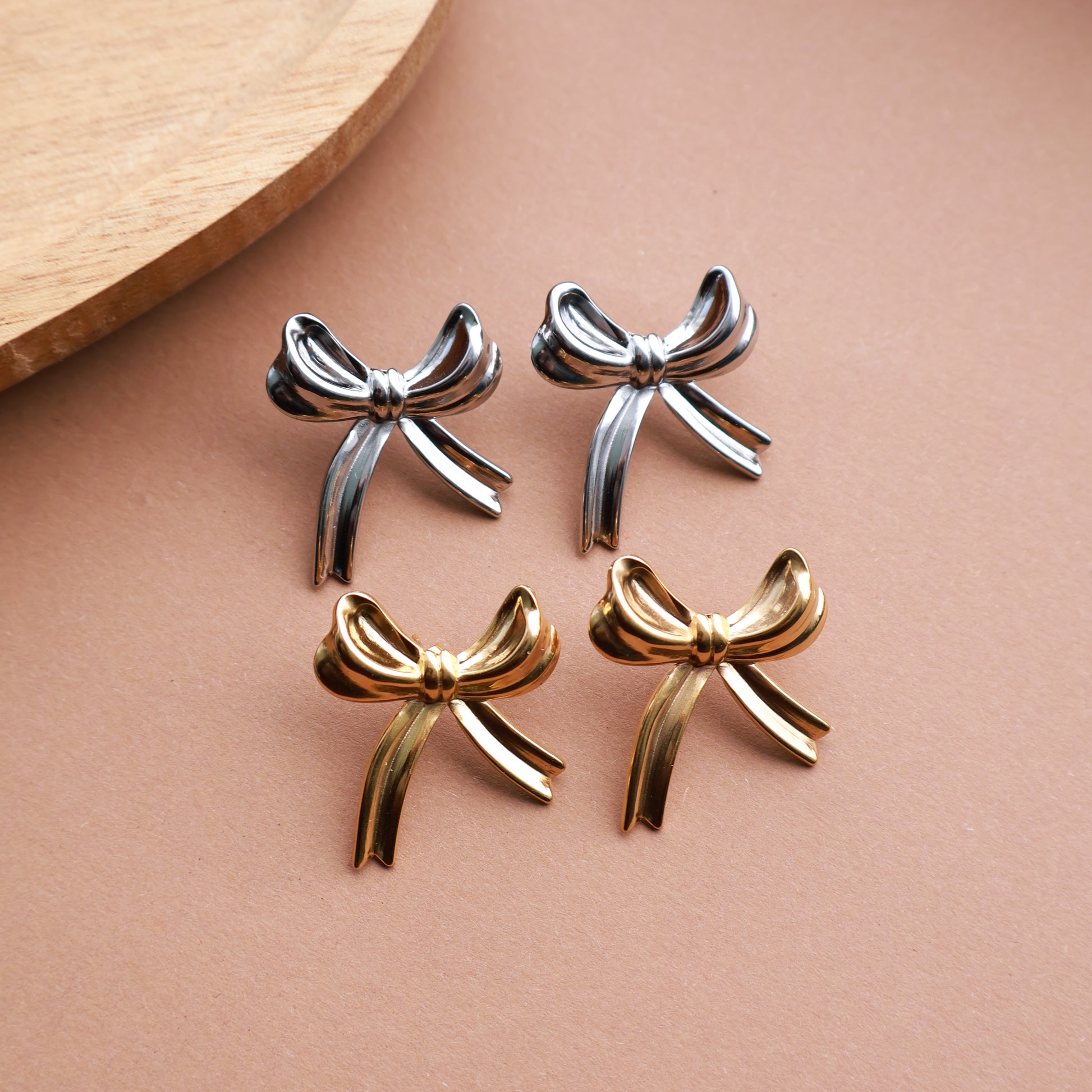 Schleifen-Ohrringe in Gold aus Edelstahl
