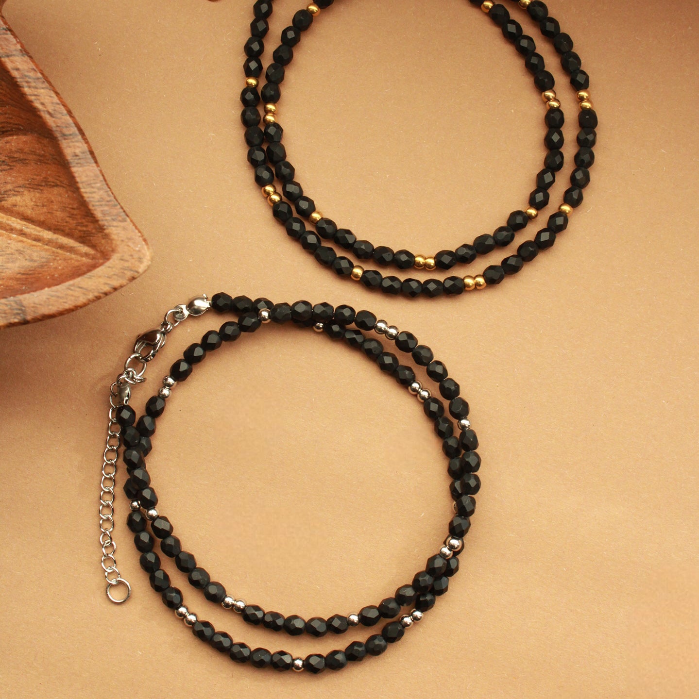 Schwarze Perlenkette mit Edelstahlperlen in Silber